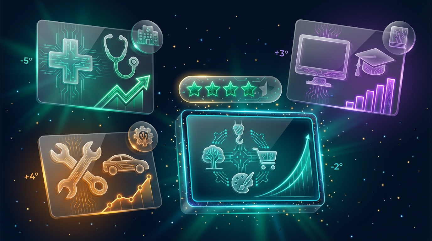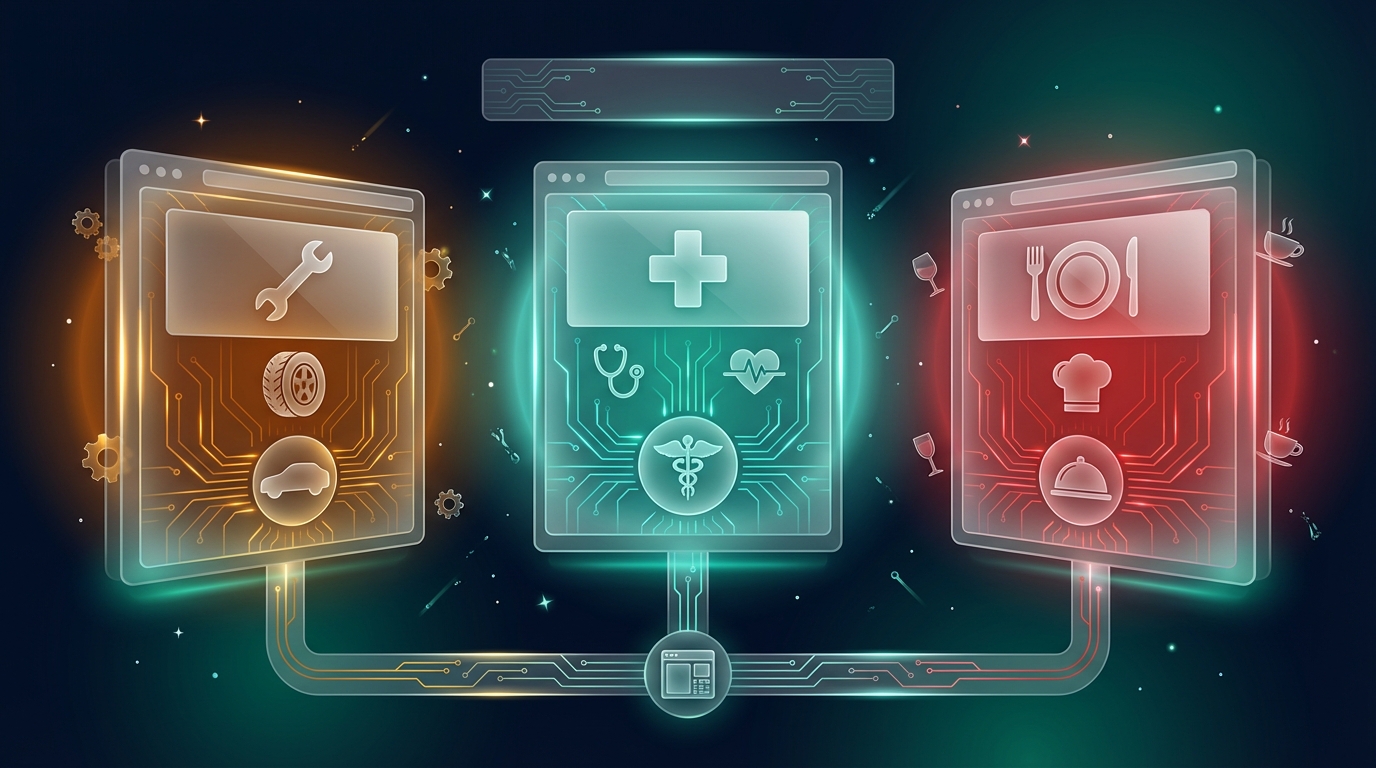 В каталоге NovaDeploy представлены шаблоны для девяти отраслей. Автосервис получает модуль онлайн-записи с выбором мастера и услуги, калькулятор стоимости ремонта и интеграцию с учётной системой. Ландшафтная студия — 3D-калькулятор площади участка, портфолио с фильтрами и формы для расчёта проекта. Медицинский центр — расписание врачей, запись на приём через сайт и личный кабинет пациента.